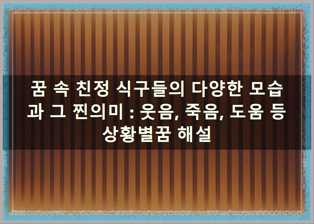 꿈에서 친정 식구를 만나는 경험은 단순한 환상을 넘어, 우리의 심리 상태와 현실 세계에 대한 숨겨진 메시지를 담고 있을 수 있습니다. 때로는 기쁨과 행복을, 때로는 불안과 경고를 암시하는 친정 식구 꿈은 어떤 의미를 지니고 있을까요? 지금부터 꿈 속 친정 식구들의 다양한 모습과 그 해석에 대해 자세히 알아보겠습니다. 바로 내용확인해 보겠슴니다.